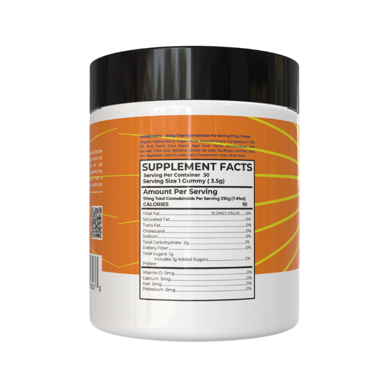 - Active Ingredient: Broad Spectrum CBD Hemp Extract (50mg per gummy)