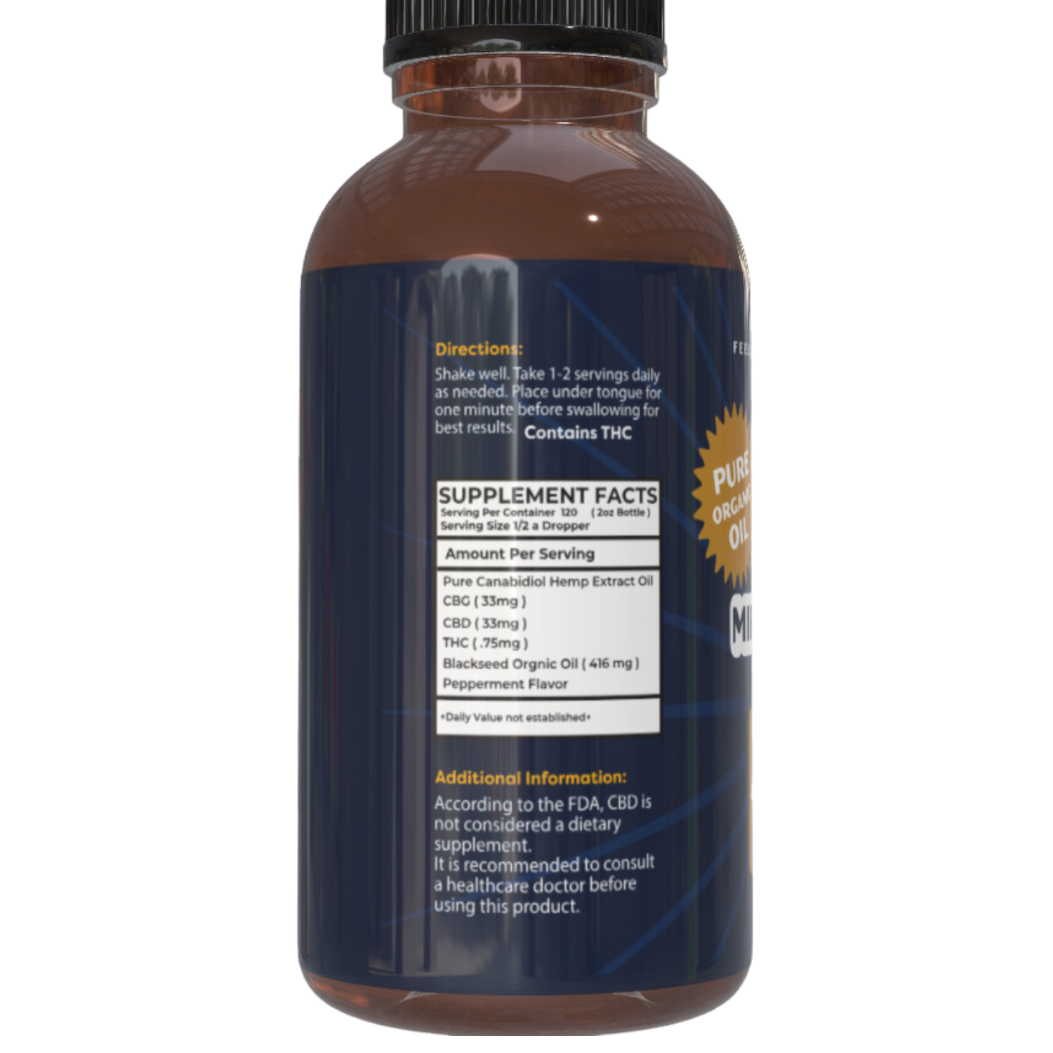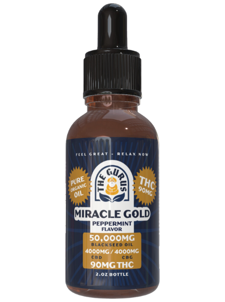 Miracle Gold 50,000mg Black Seed Oil – 4000mg CBD – 4000mg CBG – 90mg THC – Peppermint (Double Size)